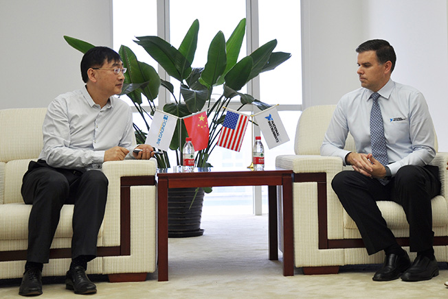 ▲博電董事長陳衛(wèi)與NI副總裁Schrerier先生進(jìn)行深入交流