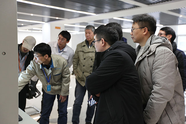▲中車時(shí)代領(lǐng)導(dǎo)一行參觀IGBT靜態(tài)測(cè)試平臺(tái)試驗(yàn)現(xiàn)場(chǎng)