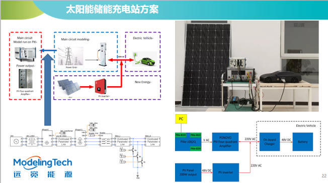 ▲Labview 搭建的太陽能儲能充電站柔性測試方案